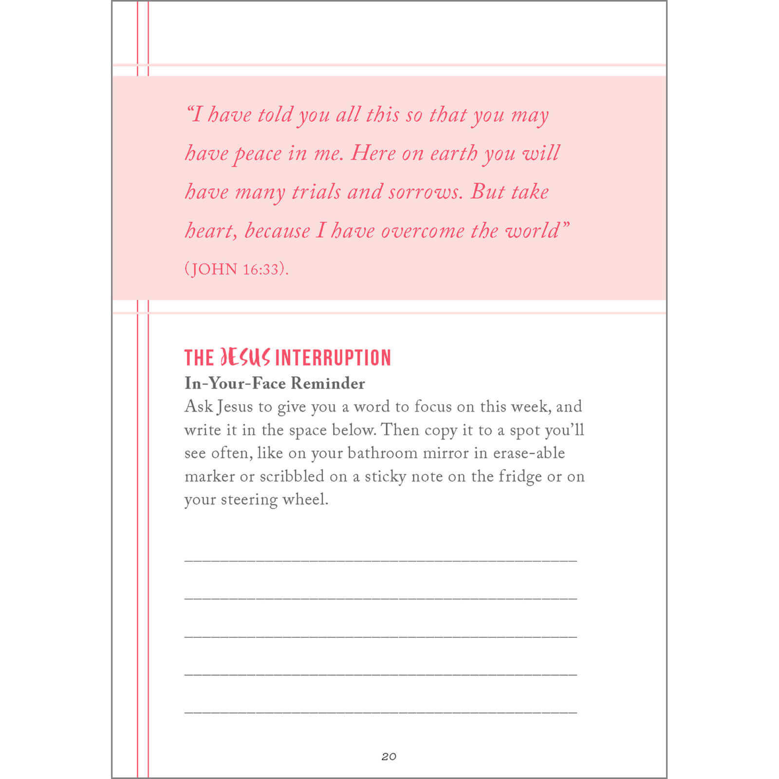- Journaling spaces—so, if you want, you can remember what Jesus is saying to you in the midst of your messy life.